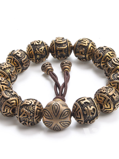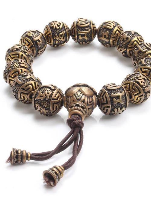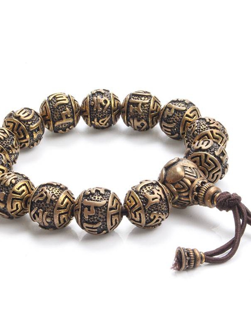 Unique bronze Budda bracelet. The unbelievable expressiveness of this accessory is provided by hand-applied words of mantra: "Om Mani Padmé Hum" on every brass bead of the bracelet. Diameter 20.5 weight 60 grams beads - 12 mm, 70 grams - beads 12-14 mm.