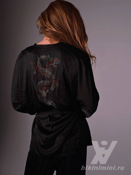 Шелковое кимоно, украшенное стразами, — это изысканный и эффектный предмет одежды, который станет настоящим акцентом в любом образе