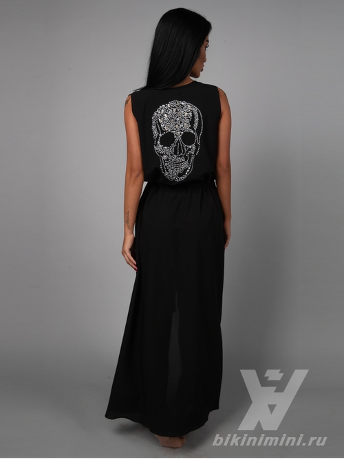 Такая туника создана точно не для скромниц, байкерская отделка спинки в виде черепа из авторских клепок и при этом легкий фасон создадут вам взрывной образ на пляже. Не будь как все.